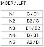 Aquí te compartimos una tabla comparativa respecto la clasificación internacional MCER.